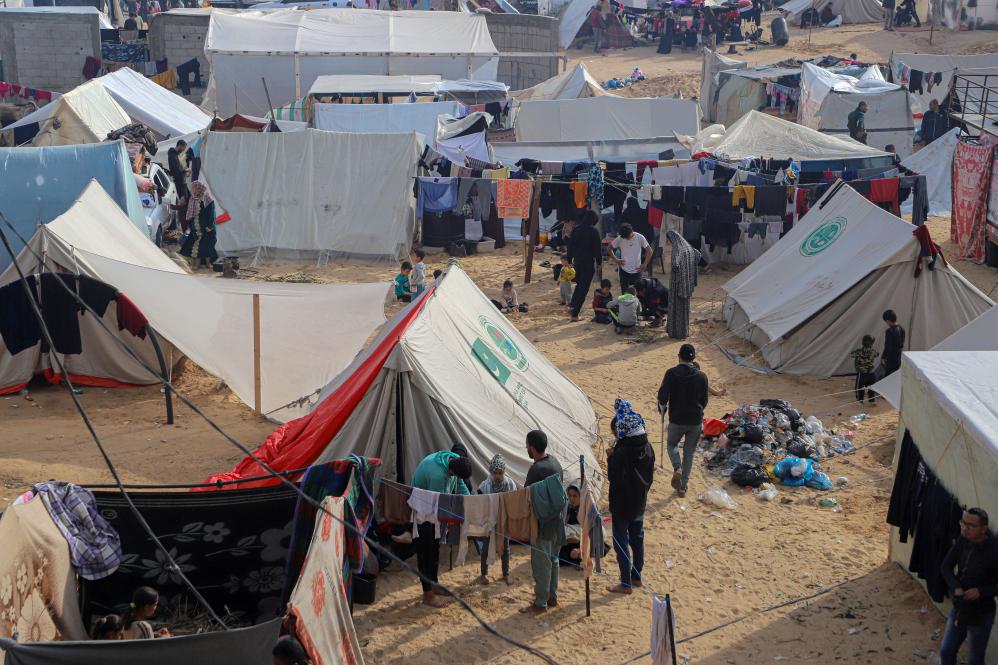 这是12月8日在加沙地带南部城市拉法拍摄的临时营地。联合国相关数据显示,本轮巴以冲突爆发以来,加沙地带已有超过180万人流离失所。新华社发(里泽克·阿卜杜勒贾瓦德摄)