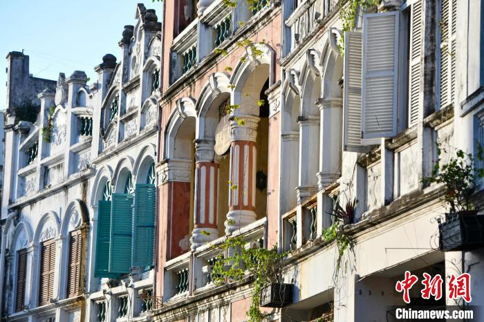 12月8日,“江山如画”网上主题宣传活动(海南)采访团走进海口骑楼老街。图为海口骑楼老街里的南洋风格建筑。中新网记者骆云飞 摄