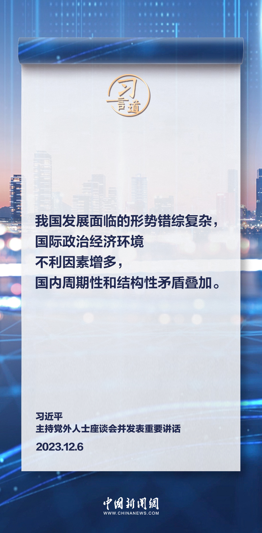 12月6日,中共中央在中南海召开党外人士座谈会,就今年经济形势和明年经济工作听取各民主党派中央、全国工商联负责人和无党派人士代表的意见和建议。中共中央总书记习近平主持座谈会并发表重要讲话。