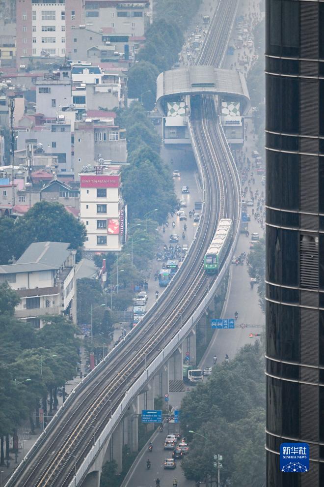 河内吉灵-河东线轻轨由中国中铁六局集团有限公司承建,是中越两国共建“一带一路”的标志性项目。这条越南首条城市轻轨总长约13公里,自2021年11月投入运行以来,大大节省了当地居民的出行时间,成为了河内新地标之一。