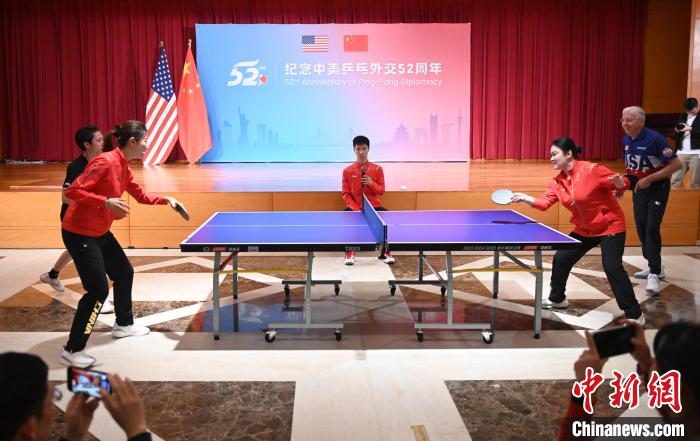 中国驻美大使馆当地时间13日晚在华盛顿举办庆祝活动纪念中美乒乓外交52周年,邀请北京大学乒乓球队与美国乒乓名宿戴尔、康妮夫妇以及大华府地区的青少年乒乓球手,以乒乓表演赛的形式,回顾历史,展望未来。