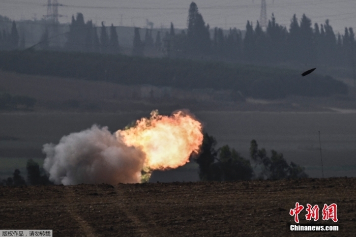 图为当地时间10月28日,以军部队向加沙地带发射炮弹。