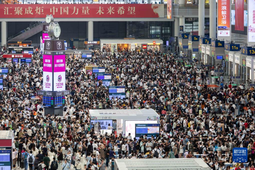 2023年10月1日,上海虹桥火车站候车大厅里人头攒动。新华社记者 王翔 摄