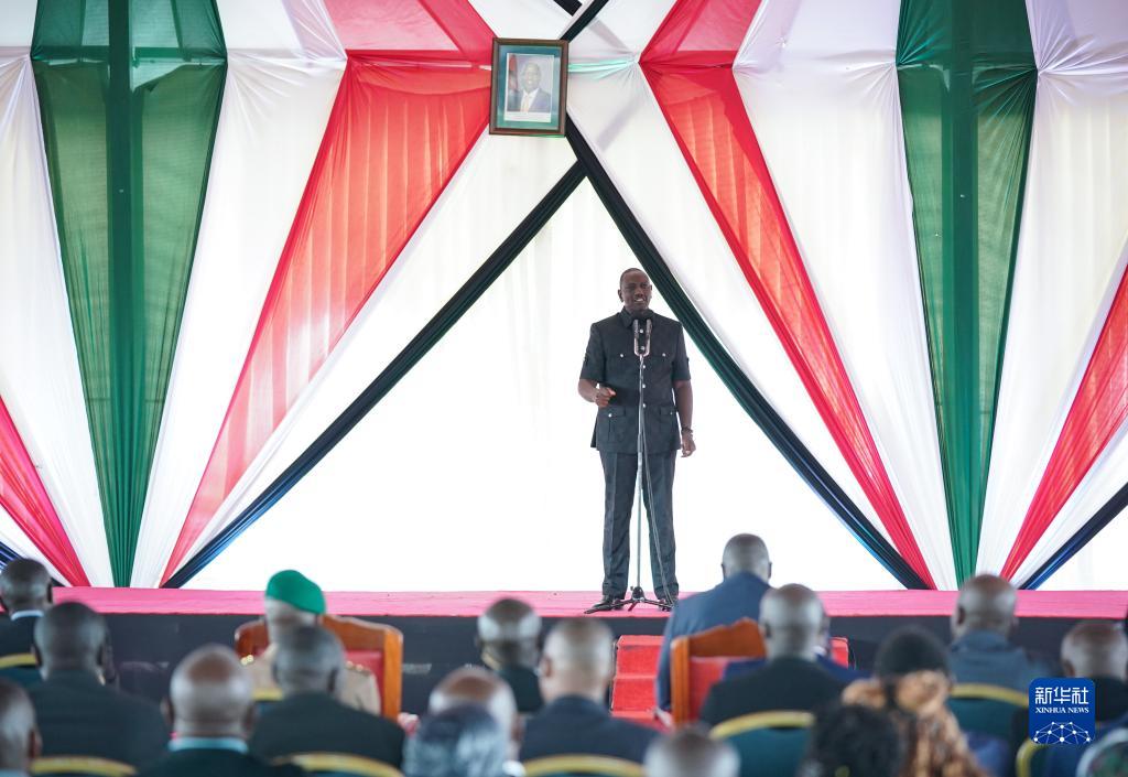 12月15日,在肯尼亚卡贾多郡,肯尼亚总统鲁托在开工仪式上讲话。新华社记者 韩旭 摄