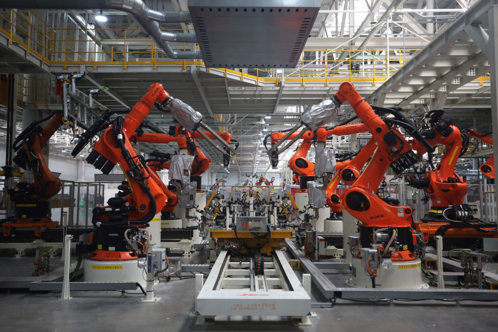 2023年5月29日在安徽合肥拍摄的大众安徽模块化电驱动平台工厂车身车间一角。新华社记者 杜潇逸 摄