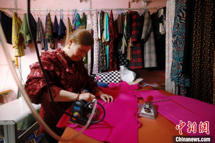 布阿米乃的丈夫在防疫站工作,三个孩子都在读书,她的主要精力就扑在店面上。由于手艺精湛,她的店深受周边女性青睐。布阿米乃也经常从网上研究服装款式,看到喜欢的样式,就复刻出来,再根据顾客需求进行细节改良。为吸引更多顾客,布阿米乃还做起线上销售,经常为顾客线上直播选款。