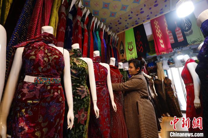 “我们和田产的艾德莱斯绸最受欢迎,顾客会买走做衣服,礼服成衣也卖得好。”祖热古丽用染着海娜红指甲的手拉起一片艾德莱斯绸向记者介绍道,和田女性很重视礼服,婚礼或者聚会场合都会穿,还有人一件礼服只穿一次,下次就要买新的款式。因为本地人这份爱美之心,她的生意一直不错,这家店每年纯收入有5万元,另一间主营家居布艺成品的店刚开业不久,生意也不错。