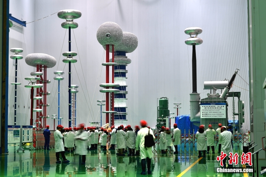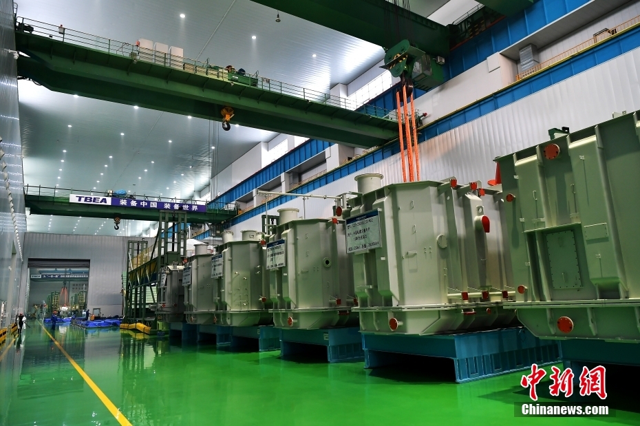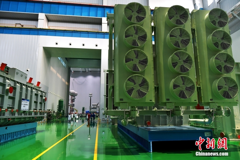 12月19日,新疆昌吉,参观者在特变电工新疆输变电科技产业园内的特高压变压器工程技术研究中心参观。作为新疆本土高新技术企业,近年来,特变电工股份有限公司各类产品核心竞争力不断提升,高新技术产品已成功进入70多个国家和地区,并为30多个国家提供一体化电力系统解决方案。
