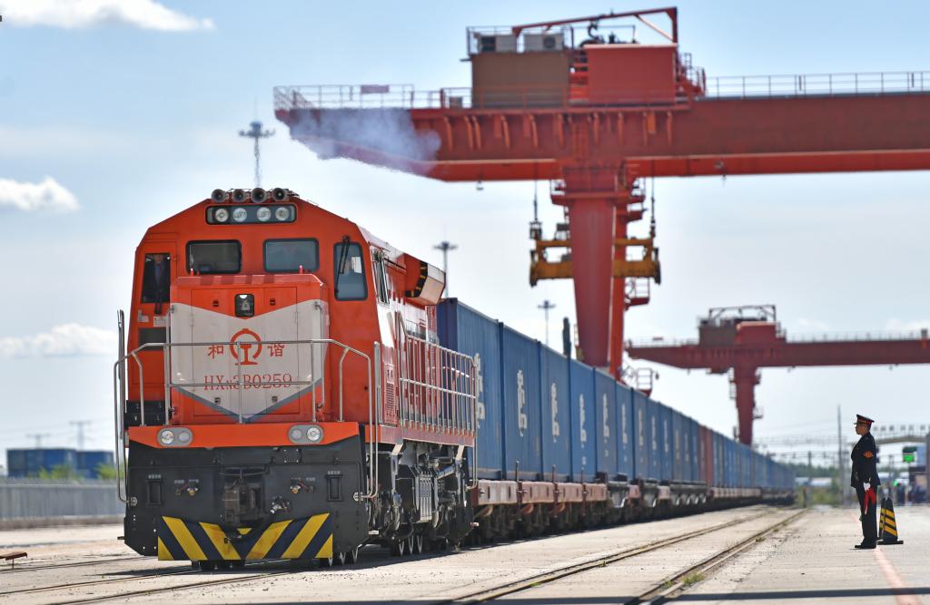 X8103次列车从中欧班列(沈阳)集结中心出发,将经由满洲里口岸驶向欧洲(9月19日摄)。新华社记者 杨青 摄