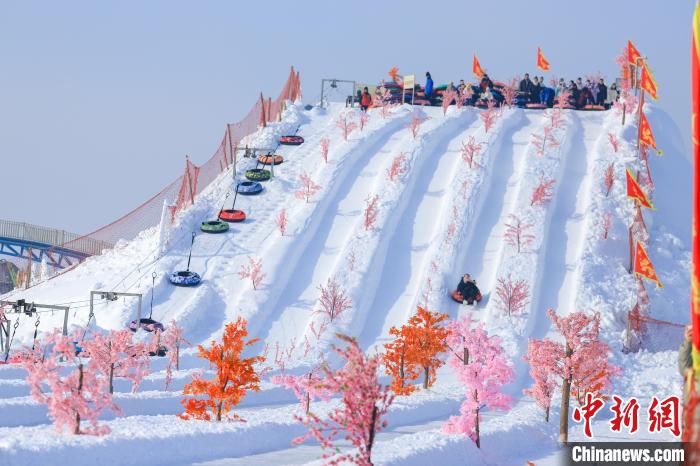 游客们在雪坡顶蓄势准备,只待飞驰而下,尽享冰雪运动带来的惊险刺激。杨辈兰 摄