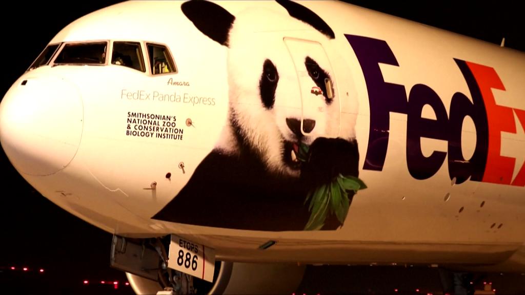 去年11月9日,旅美大熊猫“美香”一家顺利抵达成都机场。图自视觉中国