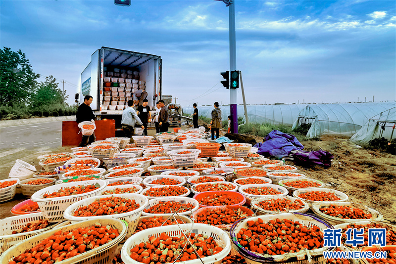新华网合肥1月19日电 (汤阳 周雨濛) 元旦前后,安徽本地产草莓开始陆续上市热销。在长丰县罗塘乡花塘村产业园的草莓大棚内,采摘、分拣、称重、包装……果农们忙得热火朝天。经过数十年发展,长丰草莓已形成36万吨的年产量,产业效益和品牌价值迈上“双百亿”台阶。