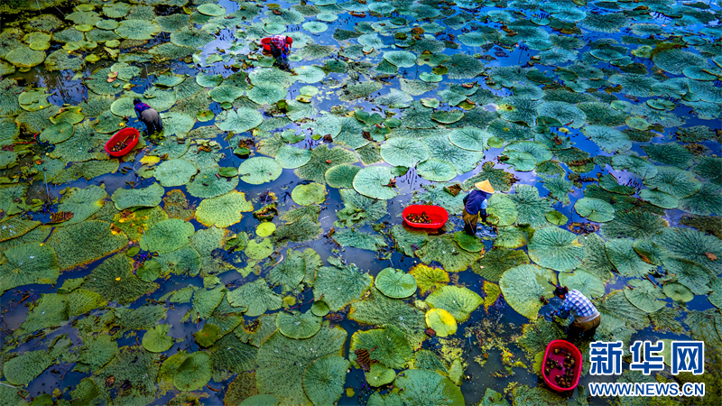 芡实采摘。杨忠铭 摄