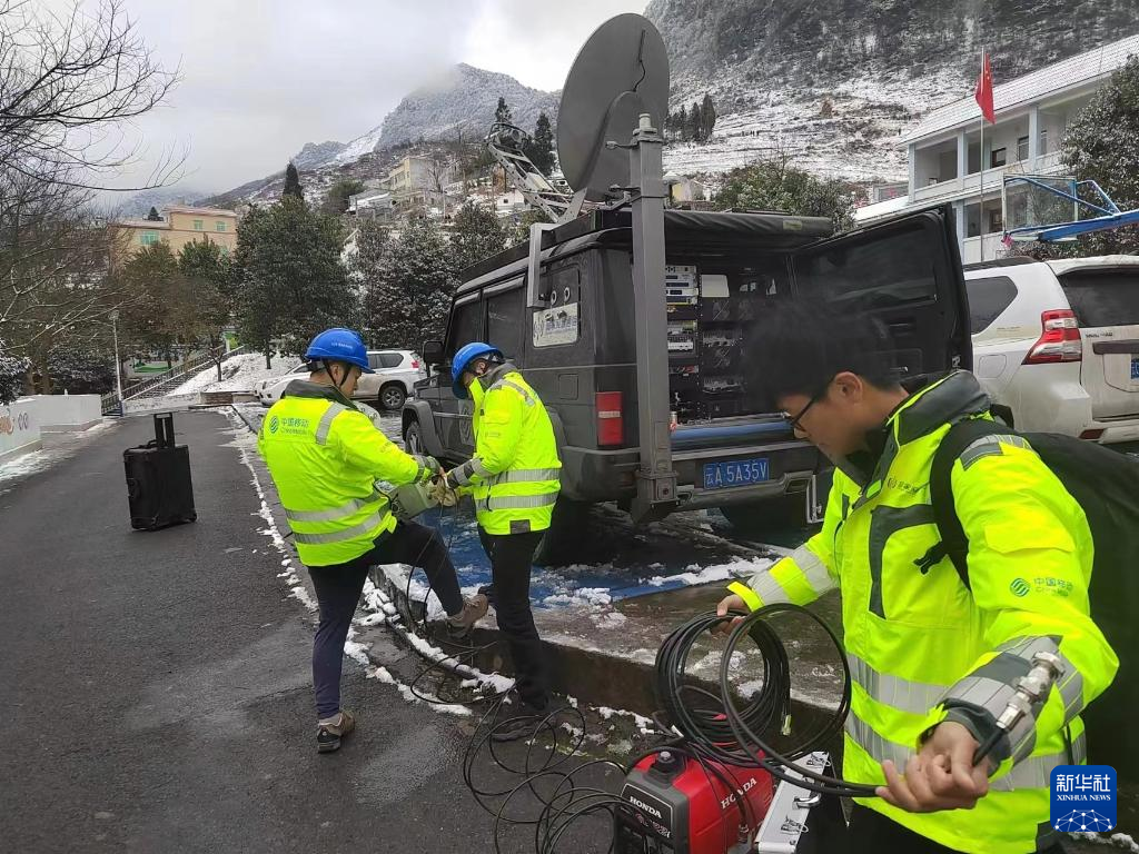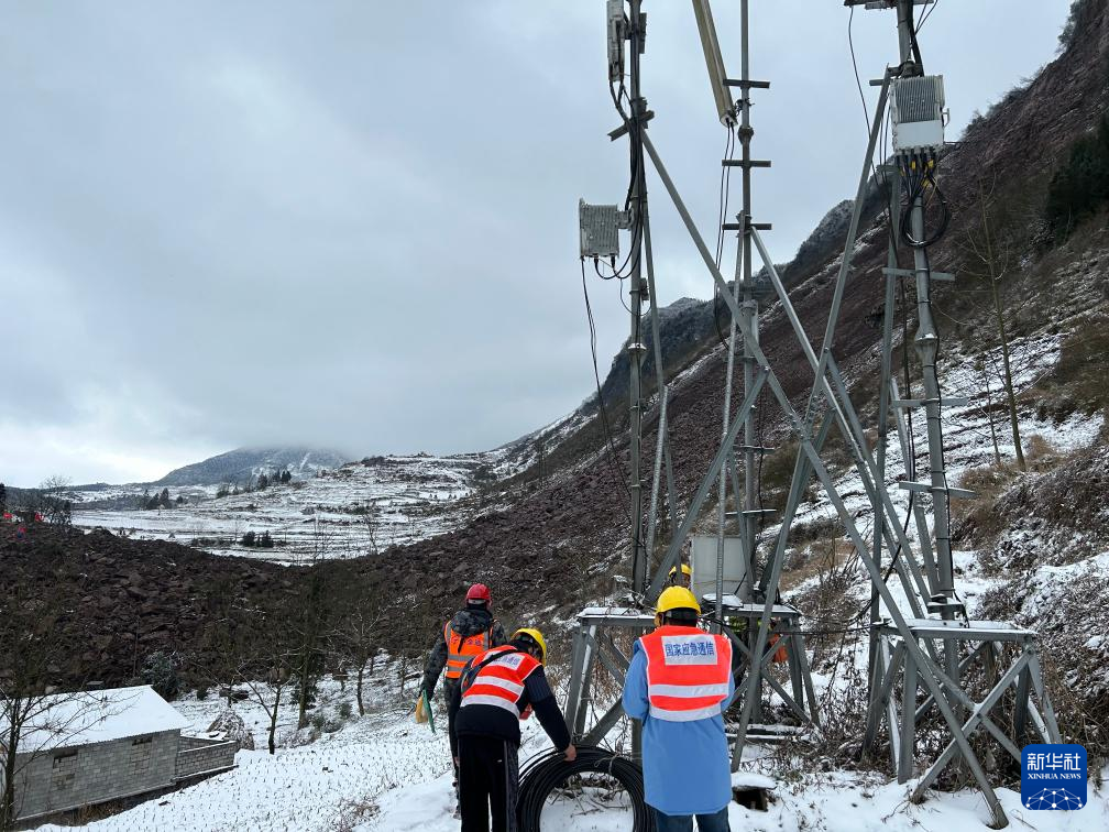 1月22日,工作人员在云南昭通市镇雄县山体滑坡灾害现场附近开展工作,保障救援现场通信畅通。新华社发