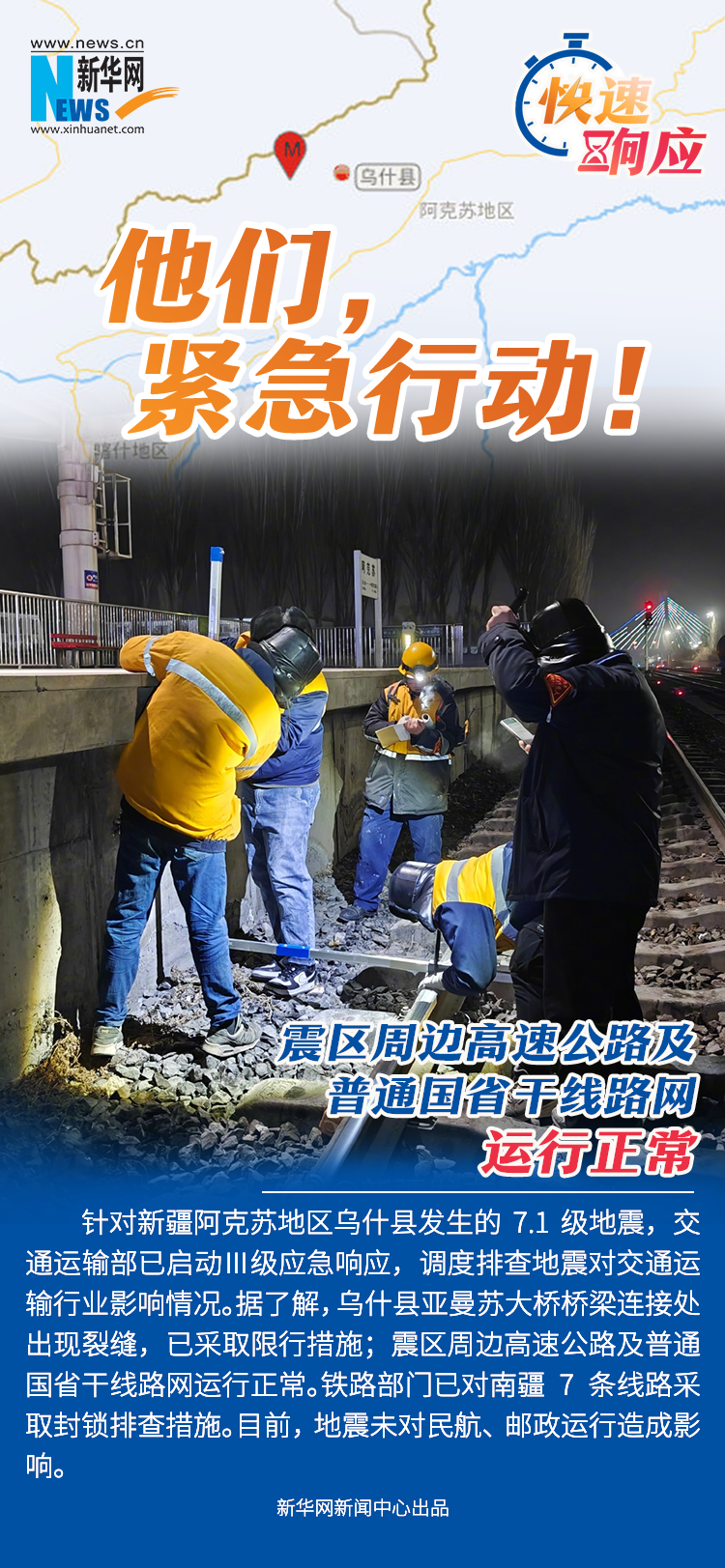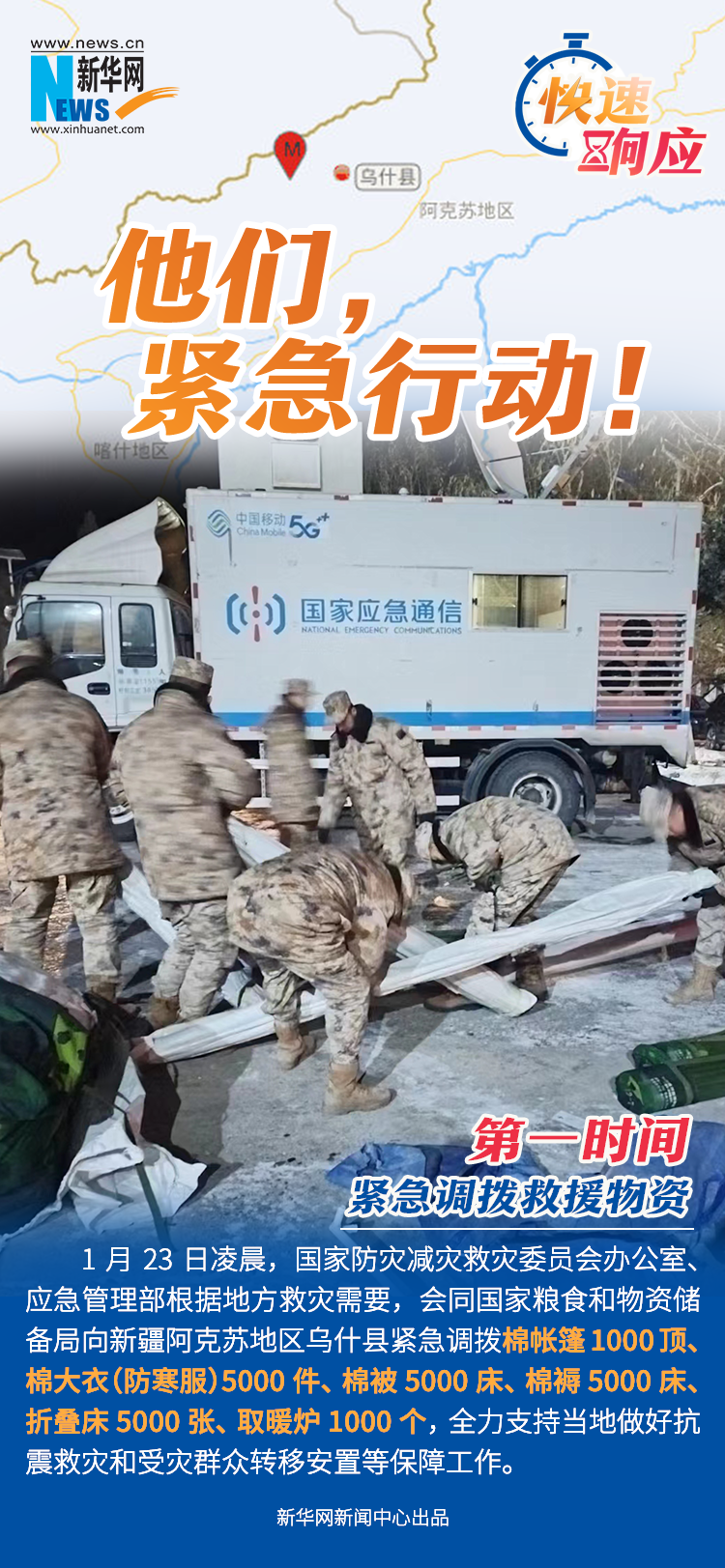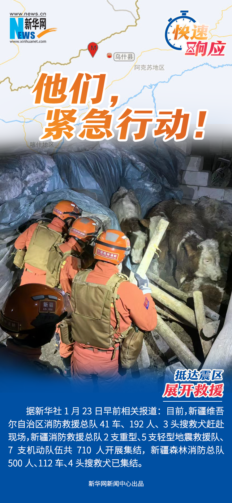 1月23日2时09分,新疆阿克苏地区乌什县发生7.1级地震。地震发生后,各方力量迅速响应,紧急行动,第一时间抵达震区,开展救援行动。