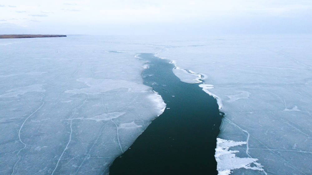这是2023年4月17日拍摄的呼伦湖开湖景象(无人机照片)。新华社记者 王楷焱 摄