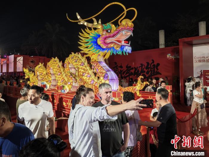 2月5日晚,“龙腾三亚 温暖中国年”2024三亚市新春旅游文化系列活动之新春游园会在三亚大东海广场举行。汉服体验、写“福”字、看花灯、画糖画……现场中国传统文化特色浓厚的活动吸引不少外国友人参观体验,感受中国农历新春佳节的“年味儿”。