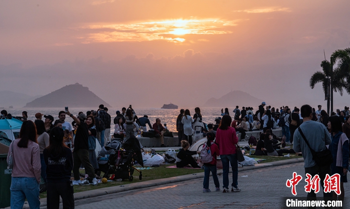 2月18日,市民游客在香港西九龙文化区观景休闲。 中新社记者 侯宇 摄