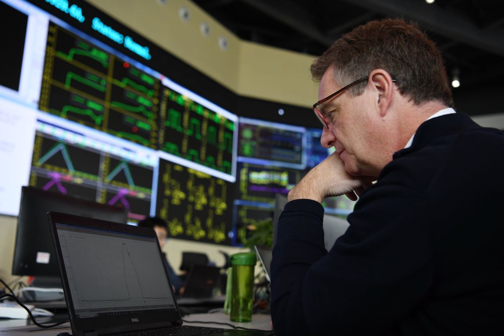 国际热核聚变实验堆ITER实验运行部门负责人理查德·皮茨在EAST控制大厅内进行联合物理实验相关工作(2024年1月24日摄)。新华社记者 张端 摄