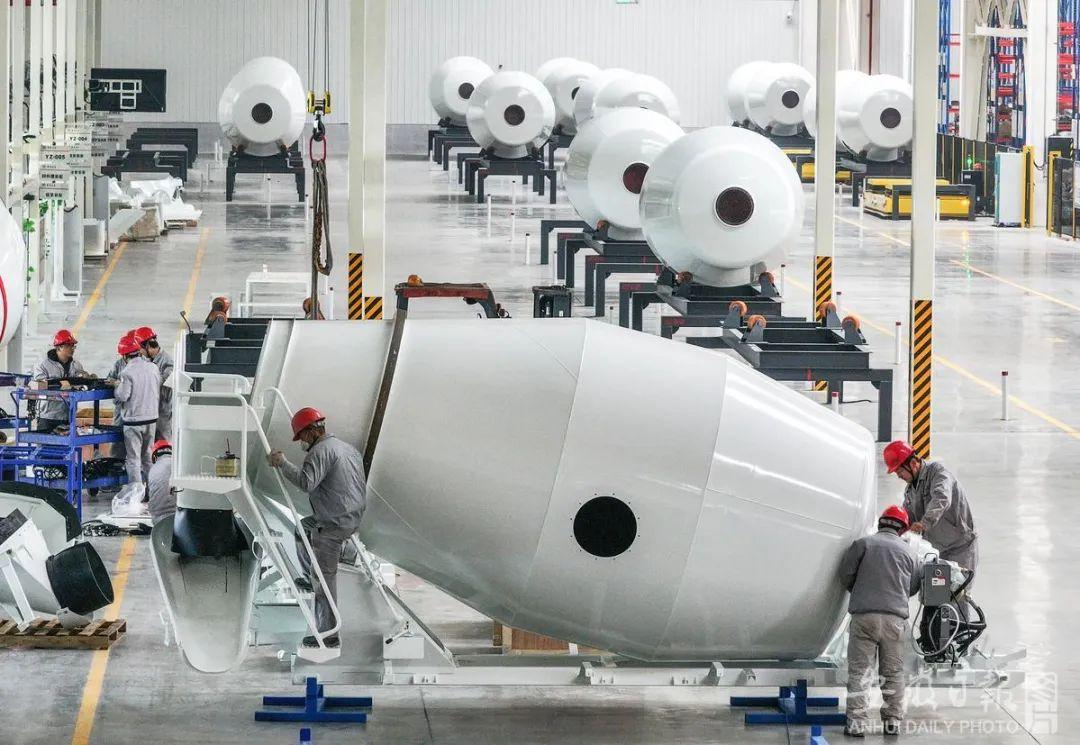 1月30日,马鞍山经开区汉马科技集团员工在组装新能源搅拌车。王文生 通讯员 姜学保 摄