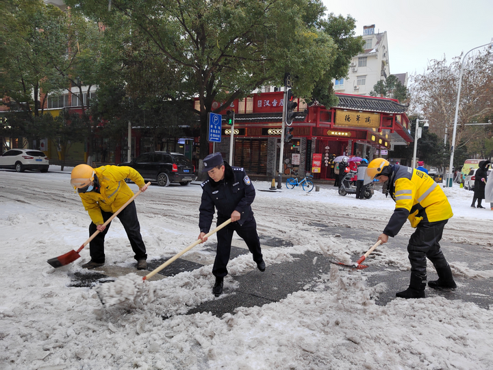 据不完全统计,自2月22日7时30分起,武汉市低温雨雪冰冻灾害应急响应级别由四级提升至三级,10小时内,武汉出动了超23万人次上街除冰铲雪,保障城市道路桥梁畅通。