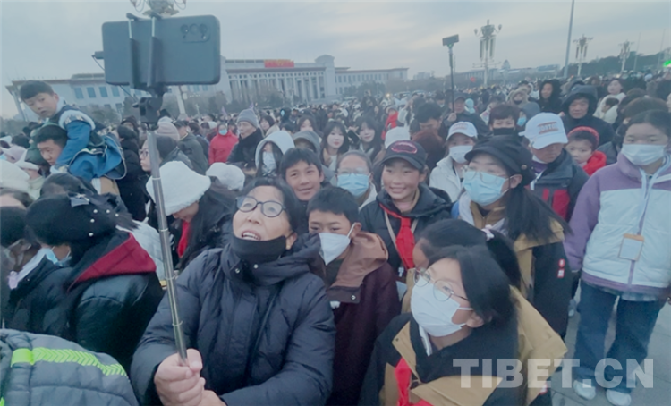 中国西藏网讯“我们来自西藏,我在天安门广场看升旗,特别激动,特别开心,特别感动!”来自西藏自治区日喀则市边境县学生赴北京参观研学的22名学生激动地挤进老师的手机镜头高声喊着。