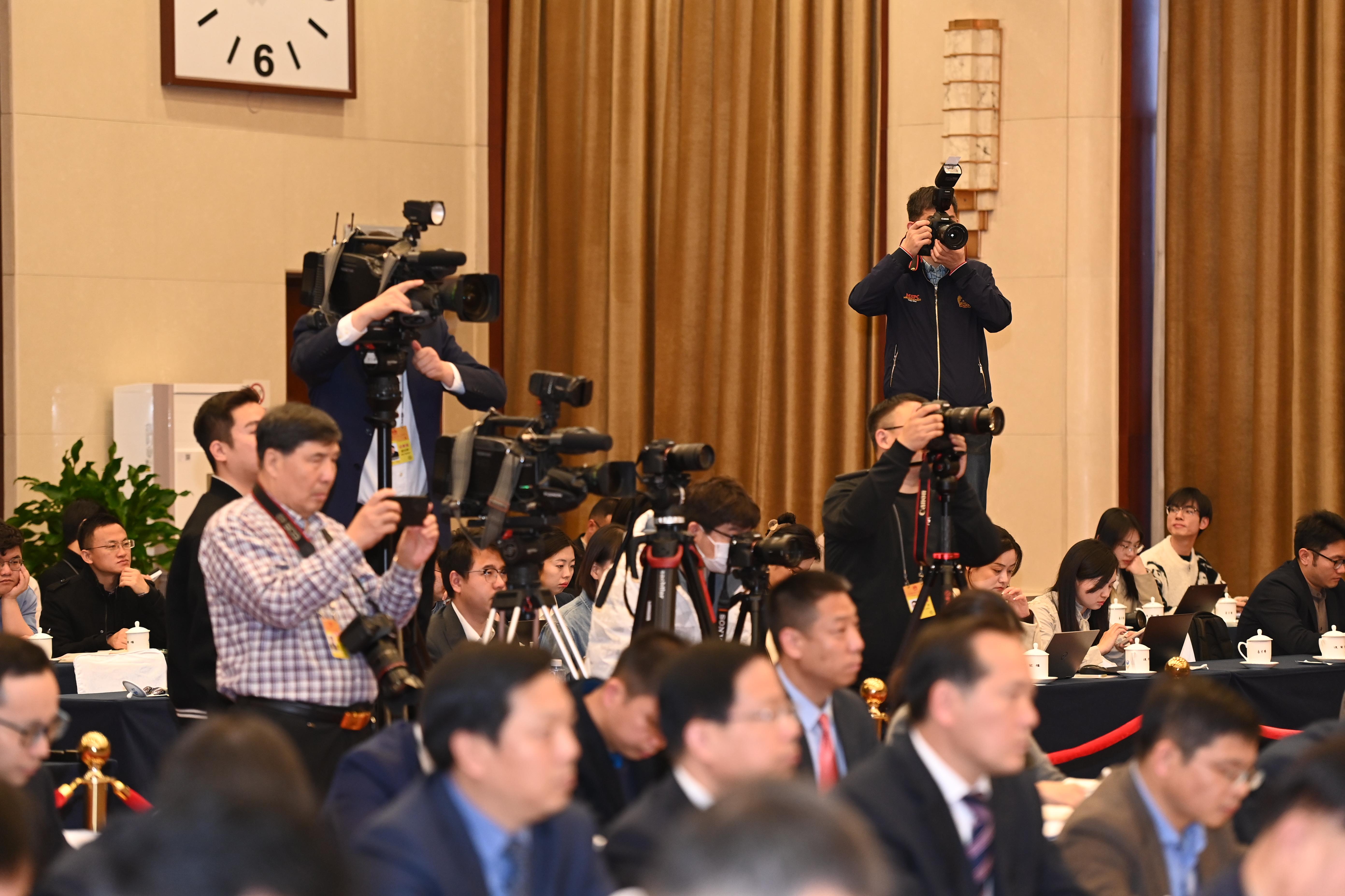 3月6日下午,在安徽代表团住地会议厅里,52家境内外媒体、85名记者参加开放团组会议。 本报记者 杨 竹 摄