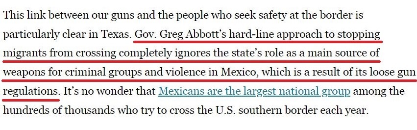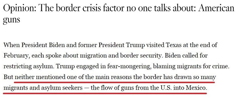 这是首次有美国权威媒体将美国枪支泛滥同非法移民问题如此紧密地联系在一起。