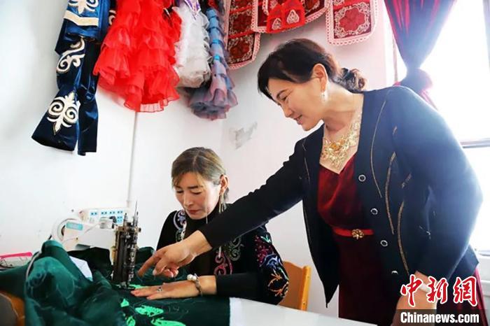 “我以前就是家庭妇女,没有工作,在阿娜尔汗·吐尔森纳洪这里学了手艺,也有了稳定的收入。”七十七团居民布里布勒说。