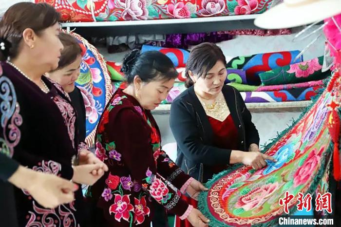 通过努力,阿娜尔汗·吐尔森纳洪的刺绣事业越干越大。富裕后的她,没有忘记身边的姐妹。