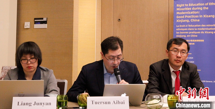 中新社日内瓦3月15日电 (记者 德永健)在联合国人权理事会第55届会议期间,中国人权研究会14日在日内瓦举办主题边会,以中国西藏和新疆为例,就“现代化发展中的少数民族受教育权”展开研讨。