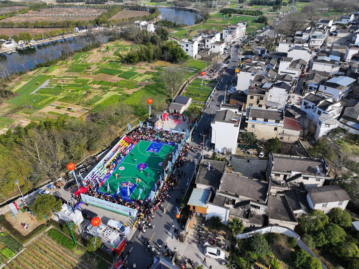 安徽省黄山市徽州区西溪南镇国际“村BA”现场。新华社记者 周畅 摄