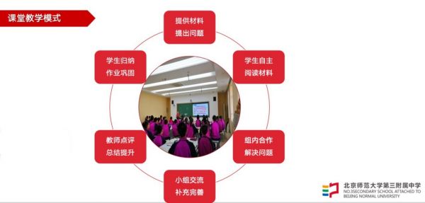 北京师范大学第三附属中学一直致力于课堂教学模式的改革,以推动教学质量的提升。全校教师积极参与探索教学模式的变革,形成六步弹性教学法,融入日常的课堂教学中。六步弹性教学法注重学生自主阅读材料并思考问题,引导学生在小组内交流思考结果、展示交流成果,最后实现学生作业巩固,这些都是实践教学的具体体现。围绕主题展开的活动设计,包括提示学生思考问题的情境、运用资料的方法、共同探究的策略,并提供表达和解释的机会。高中生的理想信念教育一定要让思政课从静态纸质的场景中走向活动化、素养化、生活化的场景中,如此才能得到有效的落实和提升。