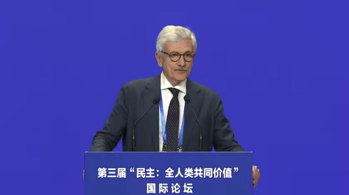由中共中央宣传部、国务院新闻办公室主办的第三届“民主:全人类共同价值”国际论坛20日在北京举行。马西莫·达莱马在论坛开幕式上的主题发言中作出上述表态。他表示,西方世界中的许多人认为,民主是属于西方的价值观,民主因此成为西方与世界其他地区对立时借以挥舞的一面旗帜;还有些人希望“民主与专制”的区别成为新的柏林墙,掀起新的冷战、新的两极对立,从而扼杀所有国际合作。