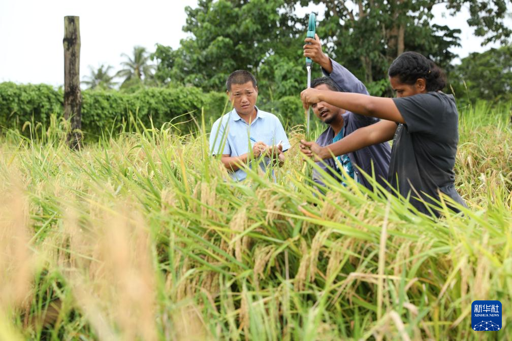 在另一块种植了中国杂交水稻的试验田里,育种专家吴明奎正在收割测产。他在测算后告诉记者,该品种水稻产量达每公顷7吨以上,是斐济当地水稻品种产量的2至3倍。