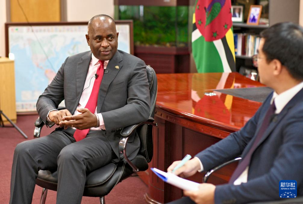 3月4日,多米尼克总理斯凯里特在首都罗索接受新华社记者专访。新华社记者 赵凯 摄