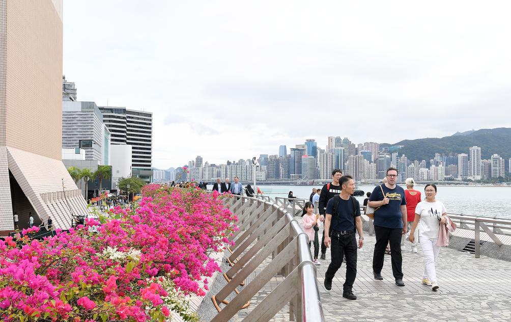 2024年3月19日,游客在香港尖沙咀游览。新华社记者 陈铎 摄