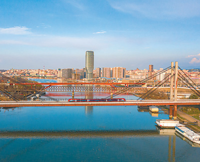 3月6日,一列旅客列车运行在匈塞铁路塞尔维亚境内贝诺段的贝尔格莱德萨瓦河大桥上。
