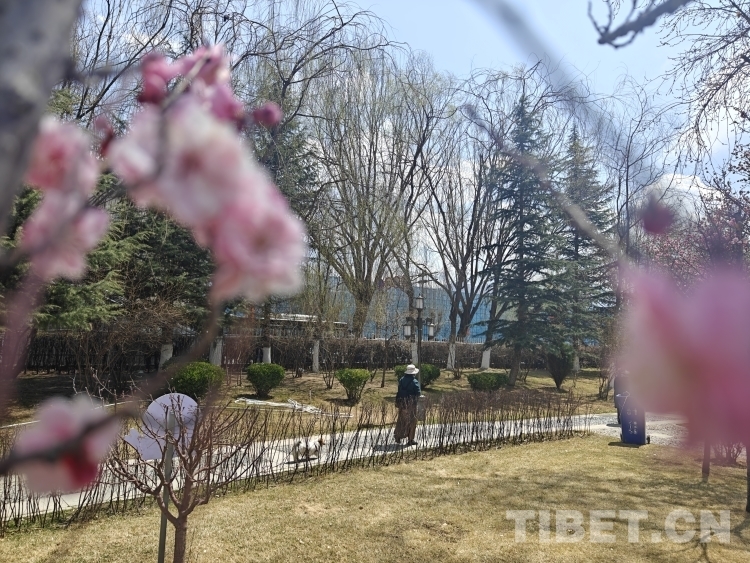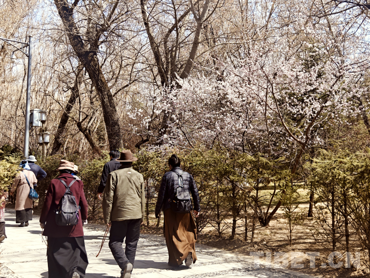 图为3月19日,拉萨市民在布达拉宫脚下的宗角禄康公园内漫步赏春景 摄影:次旦拉姆