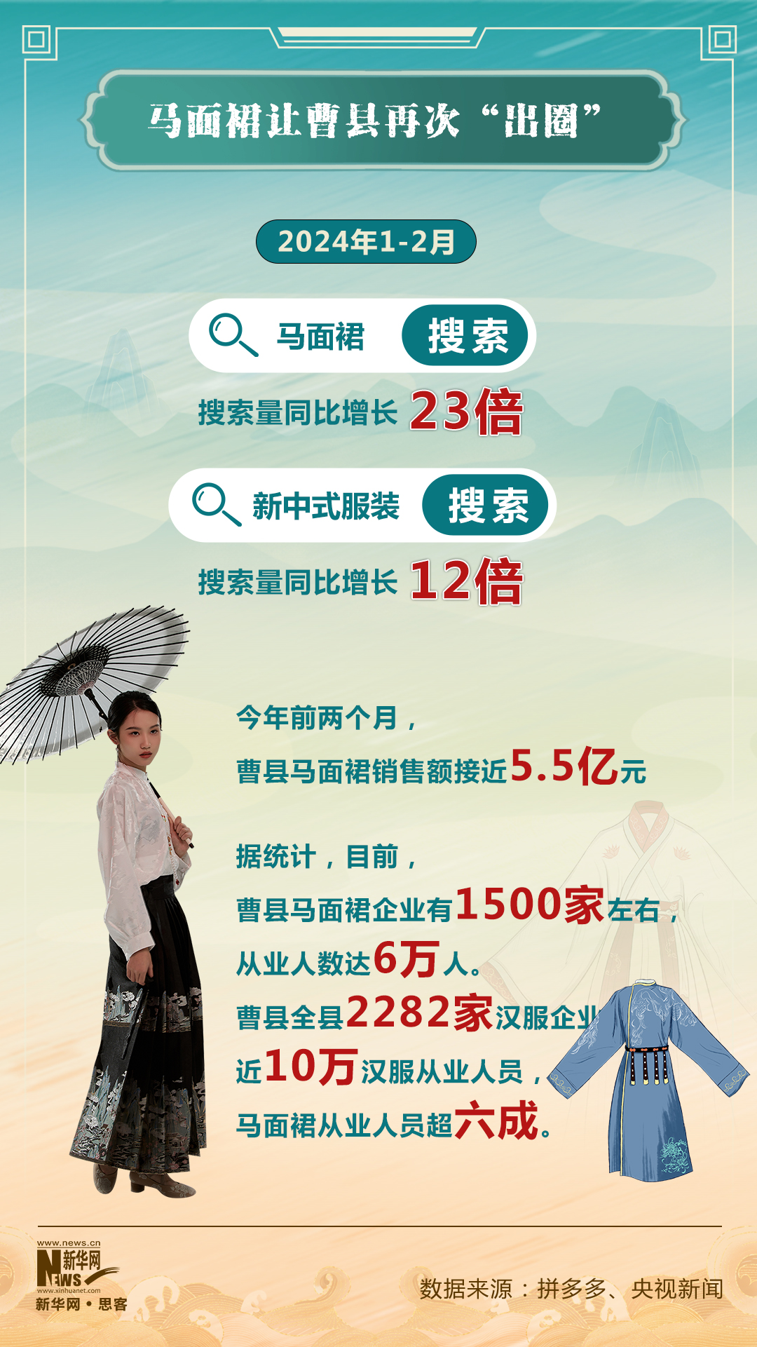 以山东曹县为例,此次马面裙的火爆已经是曹县的二次“出圈”。继上次汉服走红全网之后,马面裙再给这个小县城带来了一波流量和收入。