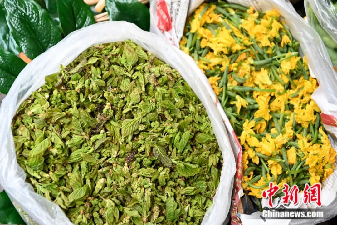 图为市场售卖的各式春花野菜。中新社记者 李嘉娴 摄