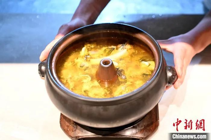 图为刚刚烹制好的汽锅鸡。中新社记者 李嘉娴 摄