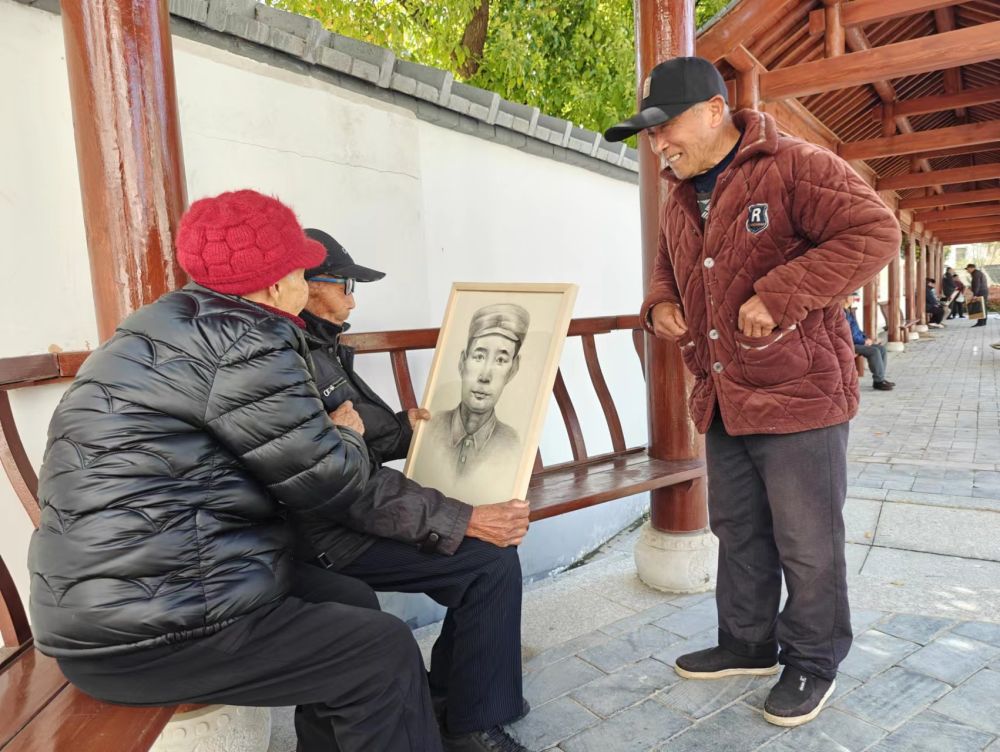 3月29日,获赠烈士画像的家人正在仔细观看画像。新华社记者 陈诺 摄