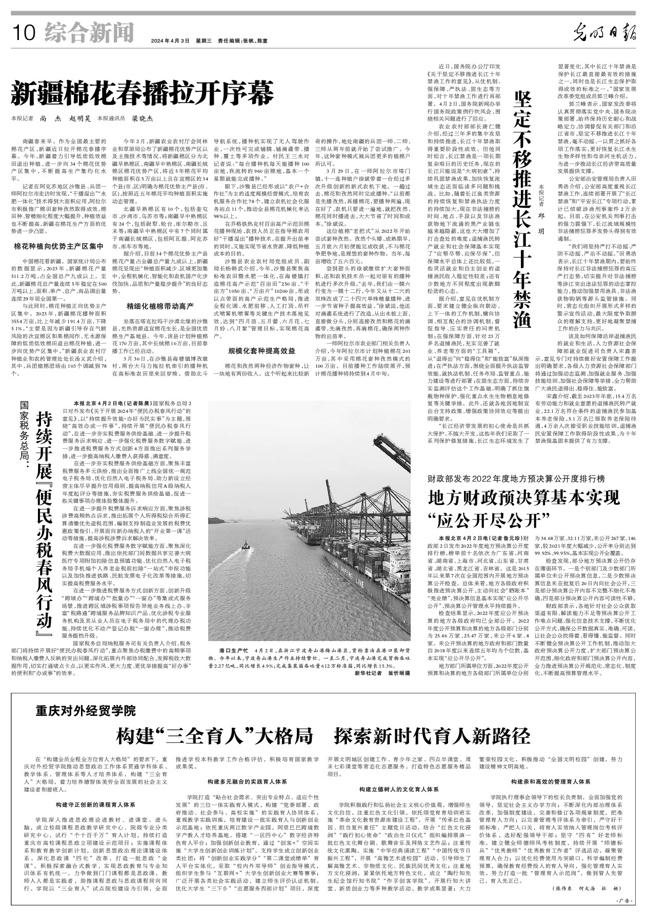 南疆春来早。作为全国最主要的棉花产区,新疆近日拉开棉花春播序幕。今年,新疆着力引导低质低效棉田退出种植,进一步向34个棉花优势产区集中,不断提高生产集约化水平。