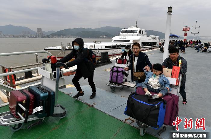 4月1日,台胞搭乘“吉顺10号”轮抵达福州马尾琅岐对台客运码头。 中新社记者 张斌 摄