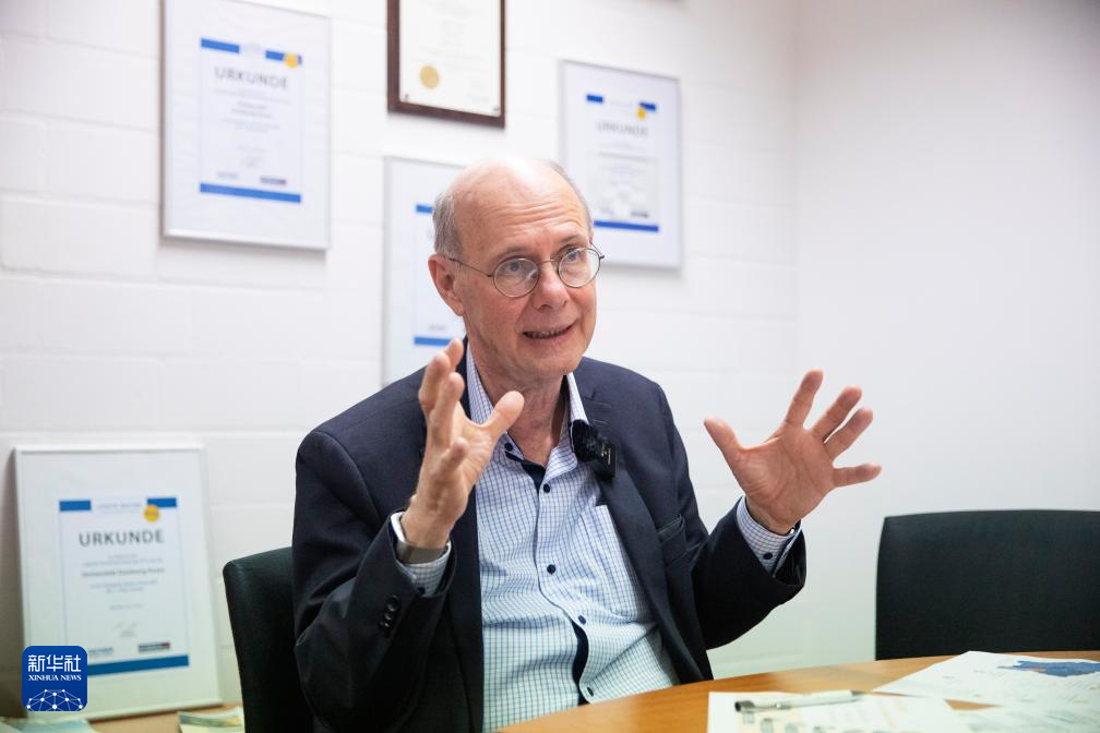 3月27日,德国杜伊斯堡-埃森大学交通与物流系主任贝恩德·诺合在杜伊斯堡接受新华社专访。新华社记者 张帆 摄
