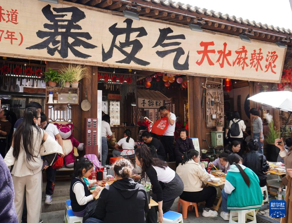 4月4日,游客在位于天水市秦州区的一家麻辣烫店吃麻辣烫。新华社记者 马希平 摄