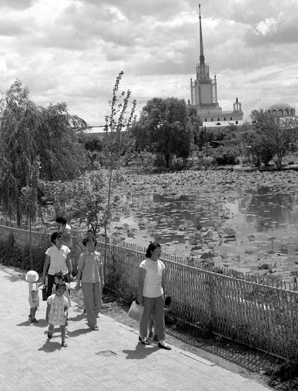 1987年,游人在北京陶然亭公园西湖的湖面上荡舟。