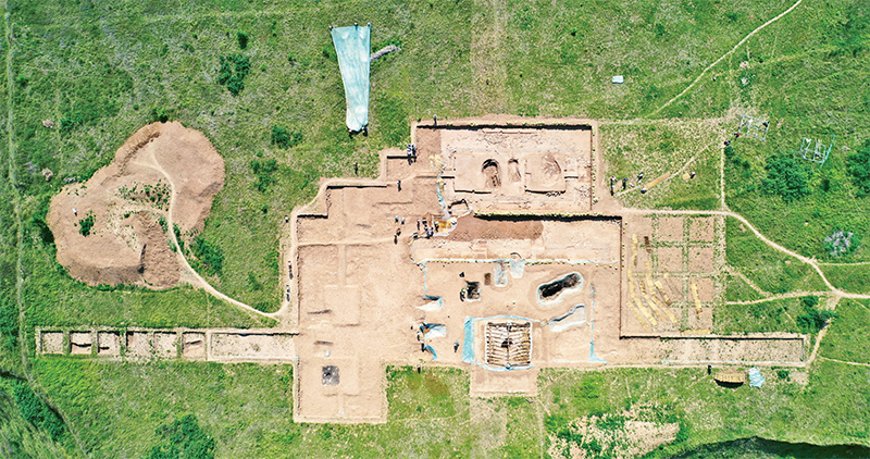 甘肃省陇南市礼县一带是早期秦文化发祥地,被誉为“秦人故里”。四角坪遗址位于礼县四格子山顶部,是目前已发现的罕见的规模宏大、格局规整的秦代大型建筑群,体现了中国古代统一国家形成初期的风格和气魄,被评为2023年度全国十大考古新发现之一。图为2022年6月10日拍摄的考古发掘现场。 新华社记者 陈斌/摄