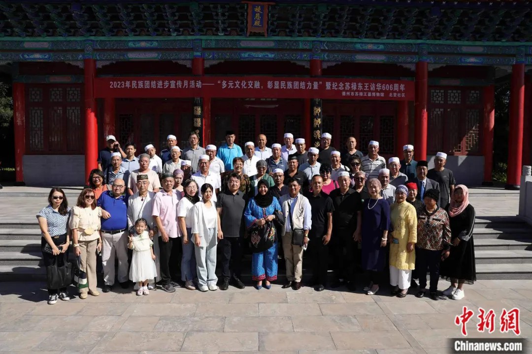 2023年9月,苏禄苏丹公主杰赛尔·基拉姆和部分中国“同族亲人”在德州市苏禄王墓博物馆前合影。受访者供图